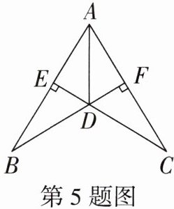5. (教材复习题第 13 题改编)如图,已知$BF\perp AC$,$CE\perp AB$,CE 交 BF 于点 D,AD 平分$\angle BAC$.