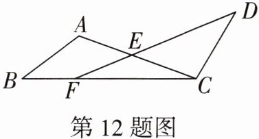12. 如图,已知点$B$,$F$,$C$在同一条直线上,$AC与DF交于点E$,$AB= CD$,$AC= CF$,$BC= DF$.