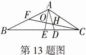 13. 如图,在$△ABC$中,$AD⊥BC于点D$,$AE平分∠BAC交BC于点E$,$CF平分∠ACB交AD于点H$,交$AE于点O$,且$∠AFH= ∠AHF$.