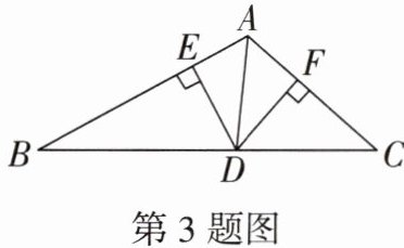 3. (黑白卷改编)如图,在△ABC中,AD是∠BAC的平分线,DE⊥AB于点E,DF⊥AC于点F,S_{△ABD}= 45,DF= 6,则AB的长为