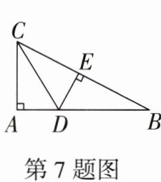 2. 如图,在Rt△ABC中,∠B= 90°,CD平分∠ACB,DE⊥AC于点E.若AE= 3,AB= 7,则△ADE的周长为