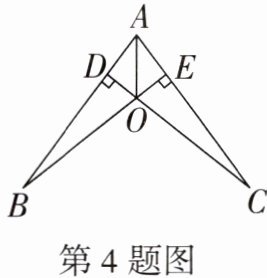 4. 如图,AO平分∠BAC,CD⊥AB于点D,BE⊥AC于点E,且CD,BE交于点O,求证:OB= OC.
