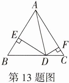 如图,在$\triangle ABC$中,$AB= AC$,D为BC边上任意一点,连接AD.已知DE,DF分别是$\triangle ABD$,$\triangle ACD$的高.