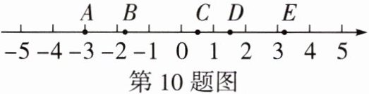 10. 如图,请将数轴上标有字母A,B,C,D,E的五个点与下列实数对应起来,再把下列各数用“<”连接起来.
