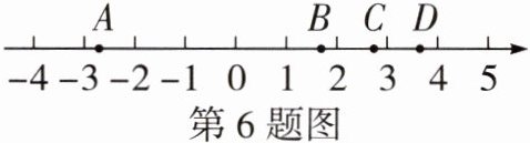 6. (教材练习第2题改编)如图,$\sqrt{14}$在数轴上对应的点可能是 (