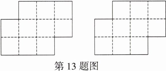 13. (中考新考法·结论开放)用两种不同的方法沿网格线将如图所示的图形分割成两个全等的图形.
