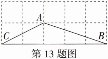 13. 如图,在2×5的网格中,每个小正方形的边长为1,且△ABC的顶点均在格点上. 则∠CAB的度数是多少?