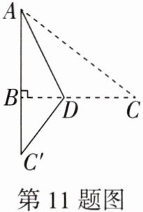 11. 如图,在 $ \mathrm{Rt} \triangle ABC $ 中,$ \angle ABC = 90^\circ $,$ AB = 6 $,$ BC = 8 $,将 $ \triangle ABC $ 沿 $ AD $ 翻折,使点 $ C $ 落在 $ AB $ 延长线上的点 $ C' $ 处,则 $ \triangle ABD $ 的面积为