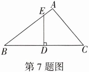 7. 如图,在 $ \triangle ABC $ 中,$ D $ 是 $ BC $ 的中点,过点 $ D $ 作 $ DE \perp BC $,垂足为点 $ D $,$ DE $ 交 $ AB $ 于点 $ E $,且 $ AC^2 = BE^2 - AE^2 $。