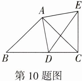 10. 如图,△ABC和△ADE均为等腰直角三角形,∠BAC= ∠DAE= 90°,点D在BC上,连接EC.