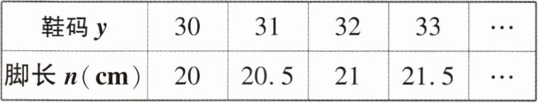 |脚长$n(cm)$|20|20.5|21|21.5|…|