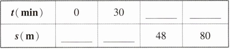 ;任务二:①结合任务一的函数表达式,完成下面乌龟爬行时间$t(min)与其爬行路程s(m)$的表格;