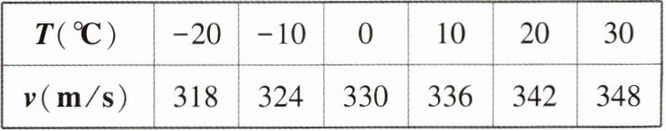 11. 跨学科情境 物理声音传播速度 经研究发现,声音在空气中的传播速度$v(\text{m/s})与空气的温度T(^{\circ}\text{C})$之间在一定范围内存在一次函数关系,如下表所示: