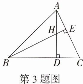 3. 如图,在$\triangle ABC$中,$AD⊥BC$于点D,$BE⊥AC$于点E,AD,BE相交于点H,且$AD= BD.$