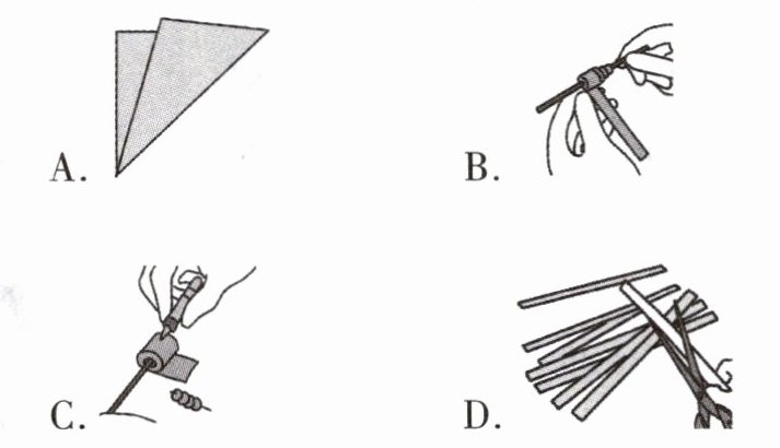 ①paper ②a ruler ③a wooden stick ④a pair of scissors