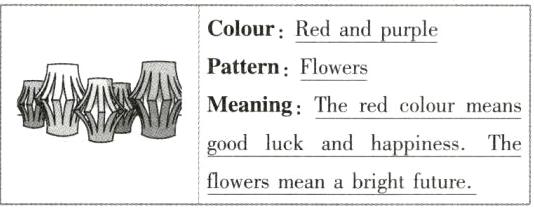 请你准备好所需材料,参考任务2中的步骤做一个简易花灯。完成后,在空白处粘贴花灯照片并用英语简单描述它。