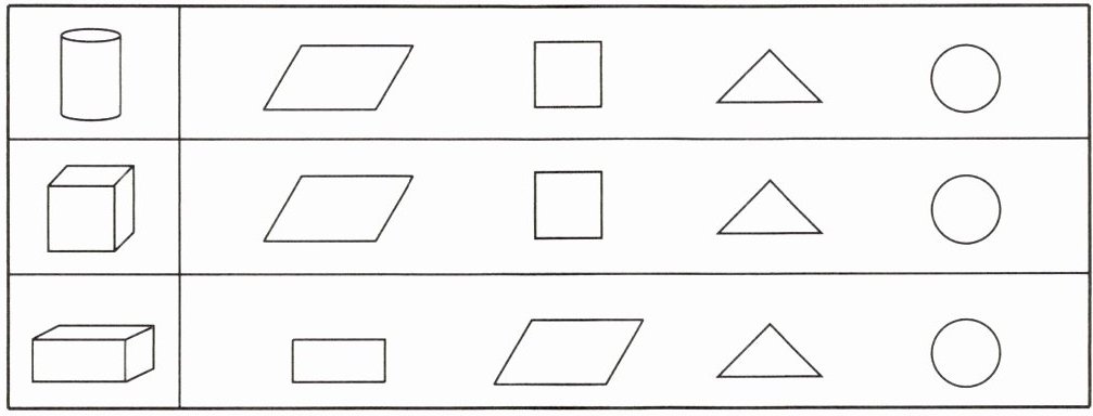 1. 第一行圆柱:圈第四个图形(圆形)
