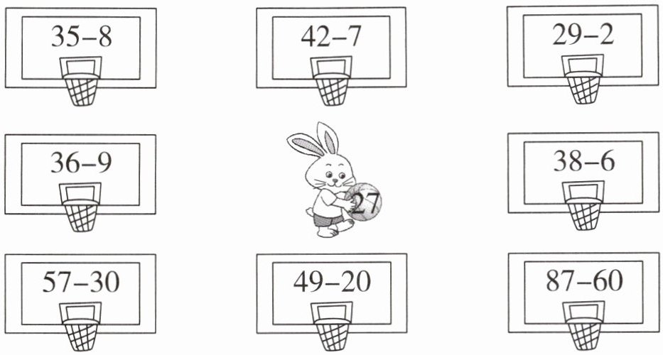 四、把小兔子要投的篮筐圈出来。