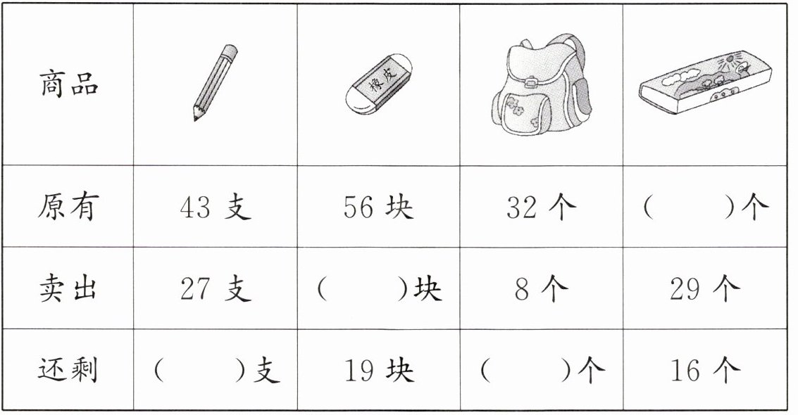 2. 图书角一共有 96 本书,其中故事书有 30 本。一共借出 19 本书,图书角还剩多少本书?