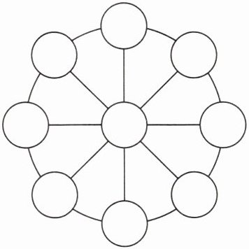 把 21、22、23、24、25、26、27、28、29 填入下面的$◯$里,使每条直线上的三个数相加都等于 75。