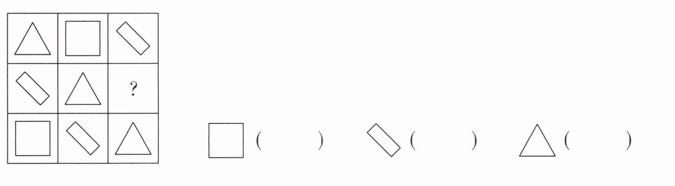 七、每种图形的个数相同,“?”处是哪个图形?请在正确图形后面的( )里画“√”。