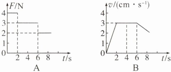 (2)小明做甲实验时, 拉力随时间变化的图像如图 A 所示, 木块的速度随时间变化的图像如图 B 所示, 则第 7 s 时木块所受的摩擦力为______