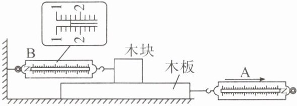 7. 一小组测量滑动摩擦力大小,水平匀速拉动木板,待测力计示数稳定后如图所示,弹簧测力计A的示数为3N,弹簧测力计B的示数为