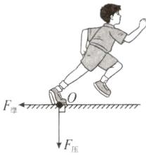 3. 如图是运动员百米赛跑时的情境,请画出它的右脚对地面作用力的示意图。(O点是力的作用点)