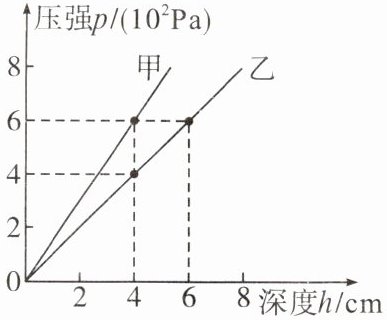 6. 小军同学研究液体压强时,绘制的甲、乙两种液体的压强与深度的关系图像如图所示。由图像知: