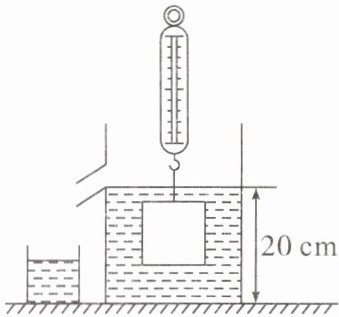 6. 如图所示,放在水平面上装满水的一溢水杯,水深为 20 cm。弹簧测力计挂着重为 10 N 的物块。现将物块浸没在装满水的溢水杯中,静止后溢出水的质量为 400 g。(g 取 10 N/kg)