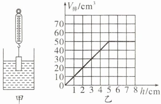 (2)解:由图乙可知,当$h=2\ \text{cm}$时,$V_{\text{排}}=20\ \text{cm}^3=2×10^{-5}\ \text{m}^3$