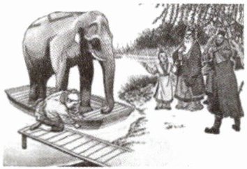 8. 如图所示,在三国时期,曹冲利用浮力测量大象的质量。聪明的曹冲把大象赶到船上,记下船的吃水深度,再用许多石块代替大象,使船有相同的吃水深度,称出石块的总质量,就是大象的质量。
