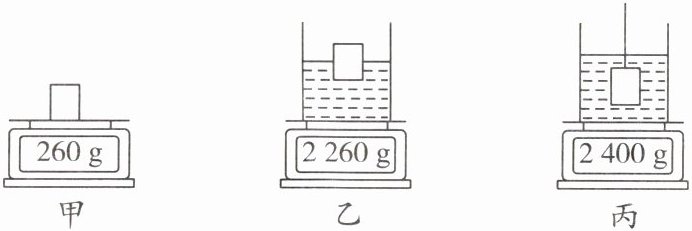 (3) 如图丙所示,用细针将木块缓慢压入水中,同时观察台秤示数的变化,他发现当木块完全浸入水中后,继续下压,台秤示数不变;