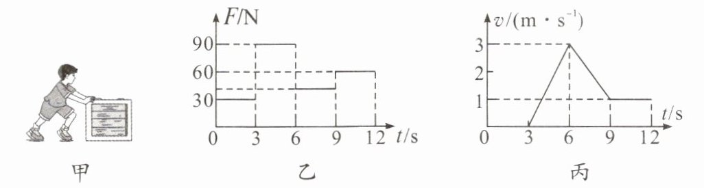 5. 如图甲所示,水平地面上的物体,受到方向不变的推力 F 的作用,其 F - t 和 v - t 的图像分别如图乙、丙所示。由图像可知:9~12 s 内,推力对物体做功