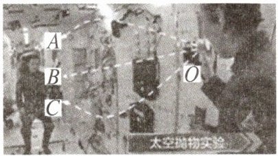 8. 在微重力环境下的“太空抛物实验”中,航天员王亚平将冰墩墩抛向对面的叶光富老师。如图所示,虚线OA、OB、OC分别表示三条运动轨迹,其中能正确反映冰墩墩运动轨迹的是______