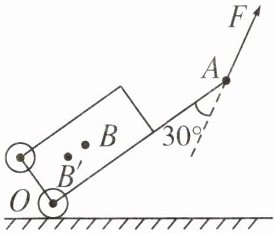 3. (多选)某同学利用拉杆箱运送物品的示意图如下。装有物品的拉杆箱整体可视为杠杆,O 为支点,B 为重心,A 为拉杆的端点,在 A 点沿图示方向施加拉力 F 使拉杆箱保持静止。下列说法正确的是(