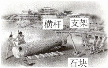 8. 我国古人运送巨木的劳动情境示意图如下,他们通过横杆、支架、石块等,将巨木的一端抬起。当巨木太重无法抬起时,下列改进方法可行的是(