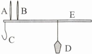 9. 如图所示,杆秤是一种传统测量质量的工具,其中 A、B 是两个不同测量范围的提纽,秤钩 C 处悬挂被测物,提起提纽 A 或 B,在秤杆 E 上移动秤砣 D,达到平衡后,根据秤砣的位置可以在秤杆上读出被测物的质量。有关该杆秤,下列判断正确的是(
