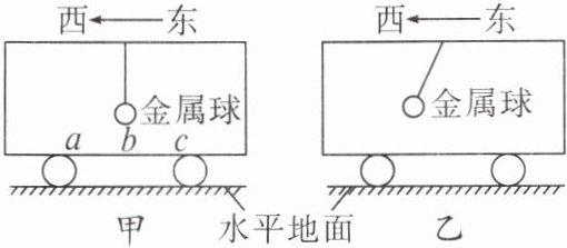10. 金属球用细线挂在车厢内,并相对于车静止,位置如图甲所示。车若是由东向西运动,则是做