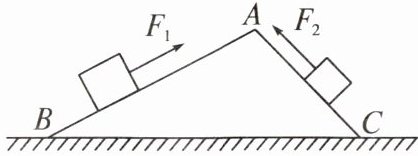 3. 如图所示,斜面 AB 和 AC 的粗糙程度相同、倾斜程度不同,将两个物体沿斜面以相同的速度从斜面底端拉到 A 点,$F_{1}= F_{2}$,下列说法正确的是(