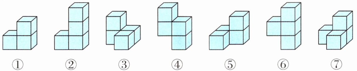 五、(数学文化)索玛立方体是由丹麦人皮亚特·海恩发明的。它是由一些大小相同的小立方体粘成七个立体图形,可以变化出许多有趣的拼法。索玛立方体又被称为“立体七巧板”。(填序号)
