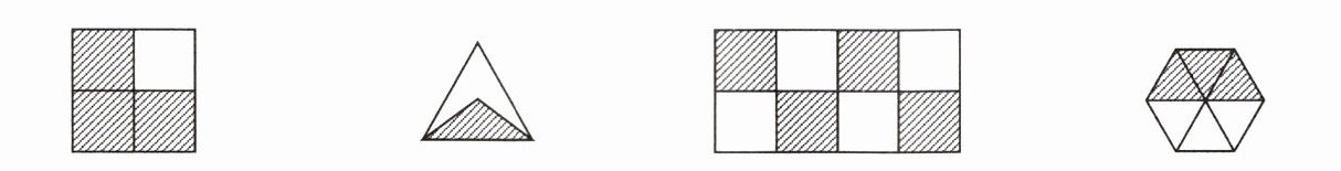 1. 把下列各图中阴影部分用分数表示并填在括号里。