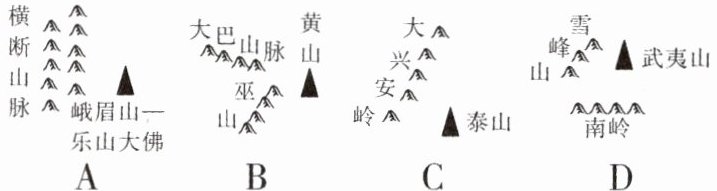 )A. 祁连山脉、武夷山脉 B. 大兴安岭、横断山脉