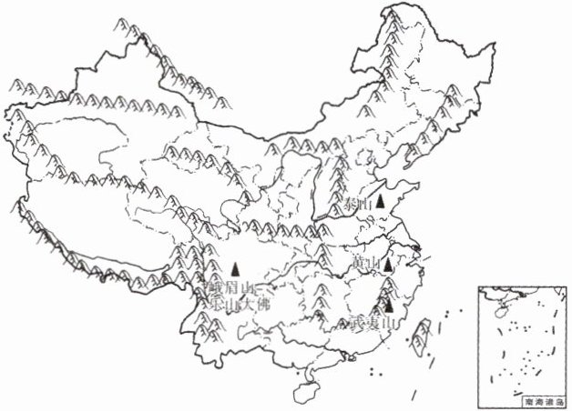 3. A 4. C 【解析】本题考查图中山脉被评为世界自然与文化双重遗产的原因。结合所学知识可知,山脉不仅是自然景观,还承载着历史、文化和民族精神,我国的自然与文化双重遗产既有秀丽多彩的自然景观,也有丰富的人文景观;矿产资源和经济发展状况不是评定为世界遗产的因素。