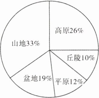 (教材活动改编)通常,将山地、丘陵和比较崎岖的高原统称为山区。读我国地形类型构成占比示意图,完成9~11题。