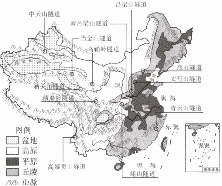 。(2分)(4)(中考新设问·意义类开放)随着隧道建设技术不断提升,我国的铁路建设取得新成就。试分析铁路快速发展对沿线地区的意义。(2分)