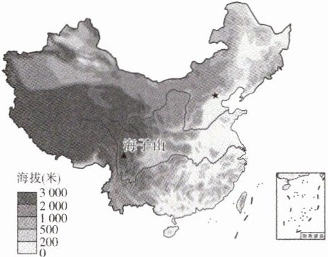 “拉索”是世界上海拔最高、规模最大、灵敏度最强的宇宙射线探测装置,位于中国四川省稻城县海子山。读海子山所在位置示意图,完成7~8题。