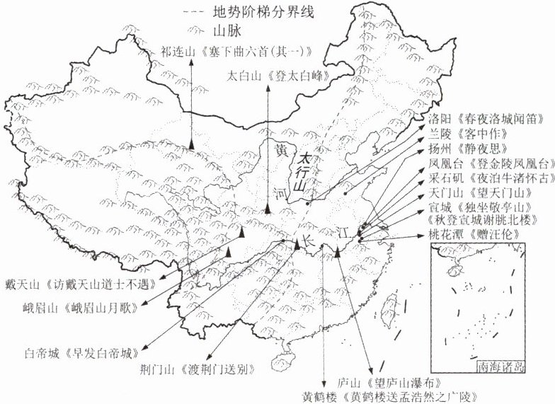 4. 李白的古诗中描写我国地势阶梯分界线上山脉的是(