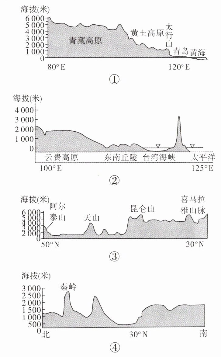 1. 能反映我国地势呈三级阶梯状分布的地形剖面图是(
