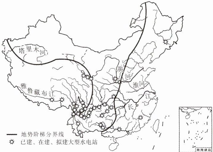 (3)大多分布在地势阶梯交界处(1分) 地势阶梯交界处地势落差大,水流流速快,水能资源丰富(2分)
